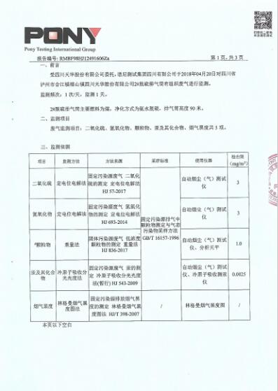 四川天華股份有限公司動(dòng)力車(chē)間2#脫硫塔2018年1季度廢氣委托監(jiān)測(cè)報(bào)告