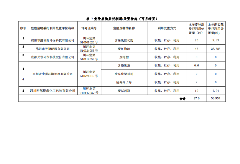 天華2020年度危廢管理計(jì)劃