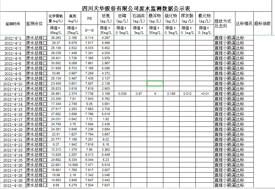 四川天華股份有限公司4月廢水監(jiān)測(cè)數(shù)據(jù)公示