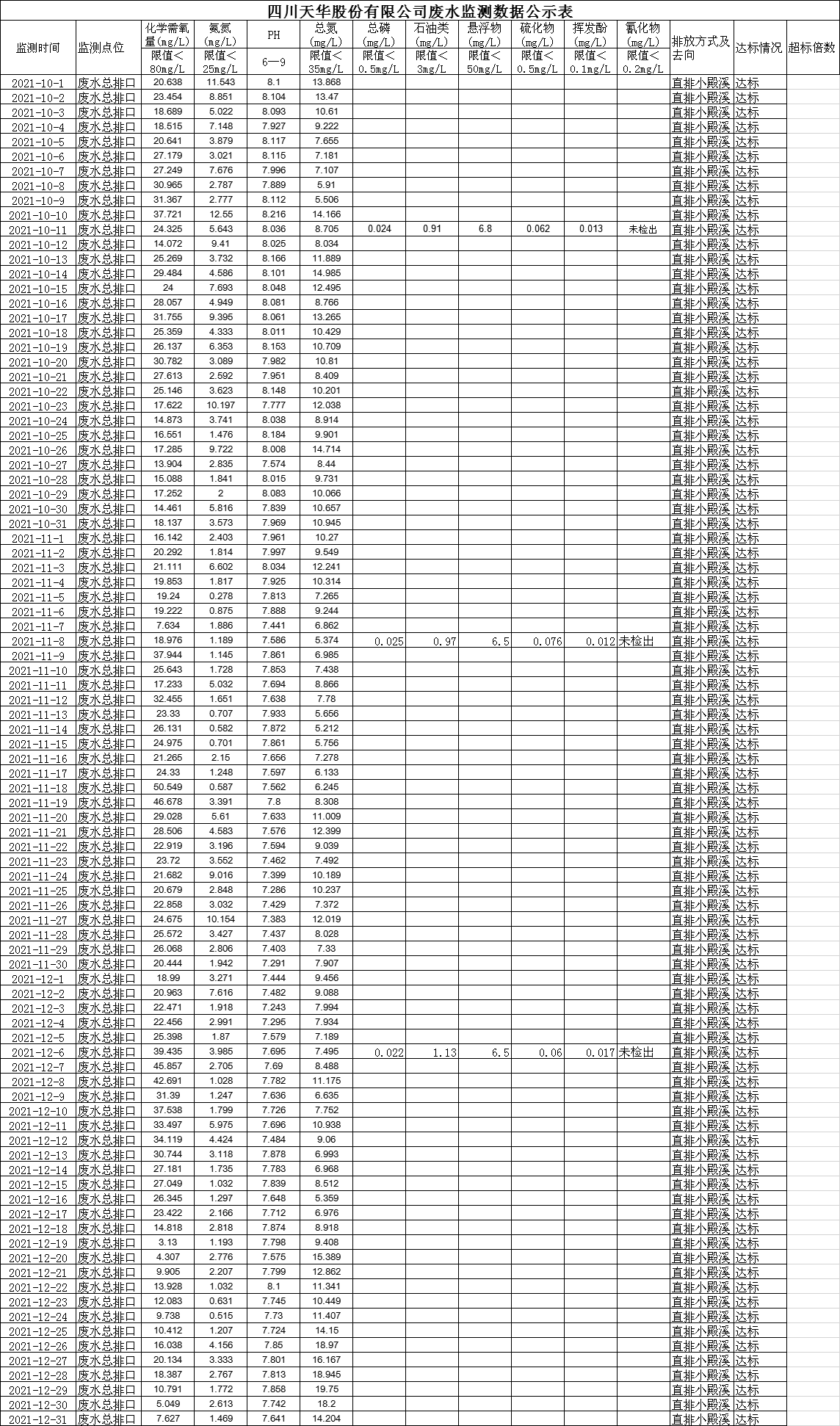 四川天華股份有限公司10月11月12月廢氣監(jiān)測公示